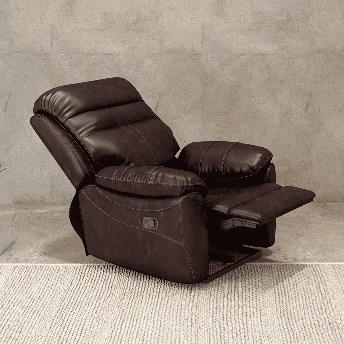 Generously cushioned and wrapped in sumptuous Leatherette, the Mirage is the epitome of pure comfort. Its firm yet cozy seat, paired with a plush headrest and cushioned arms, makes it an inviting piece for all generations. Complete with a smooth rocker mechanism, this reclining chair effortlessly combines form and function.